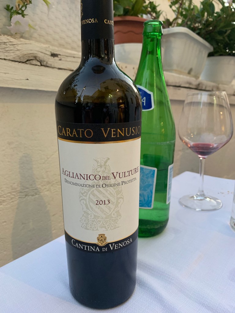 And then, of course, there’s the wine. Various connoisseurs I know are rather dismissive of Puglian wines as being easy drinking and lacking in distinction. Personally, I love Puglian red wines: they’re scented, full of flavour and low on hard tannins. The predominant grapes here are Primitivo (the same variety as the US Zinfandel), Negroamaro and Malvasia nera; there’s a wine called Salice Salentino that blends either two or all three of these. There are others to be discovered: we didn’t get round to Nero di Troia, but the contents of our bottle of Susumaniello vanished without trace in a chorus of yums. I’m less keen on the whites here, but they make a mean summer rosé with Negroamaro.