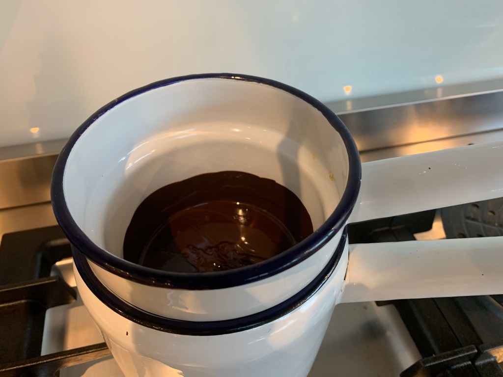 - Melt 150g of the chocolate in a double boiler. Then leave it to cool.