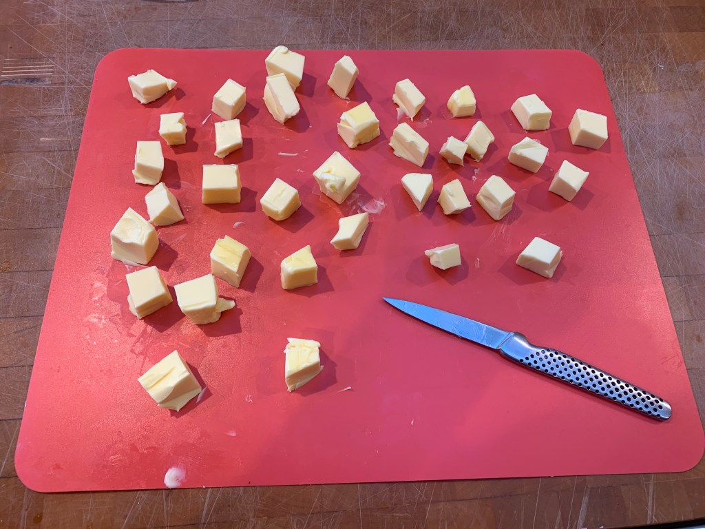 If your butter isn’t soft, cut it small cubes and leave it at room temperature for a bit (see photo)