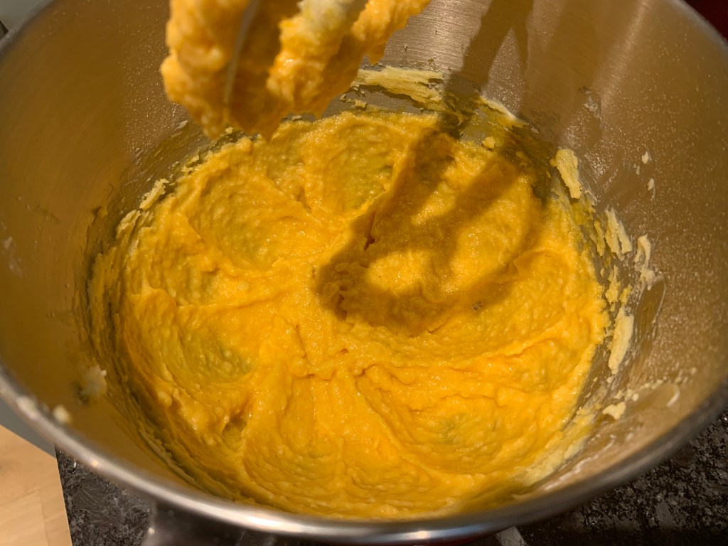 - Beat in the egg yolks gradually until the mixture is light in colour.