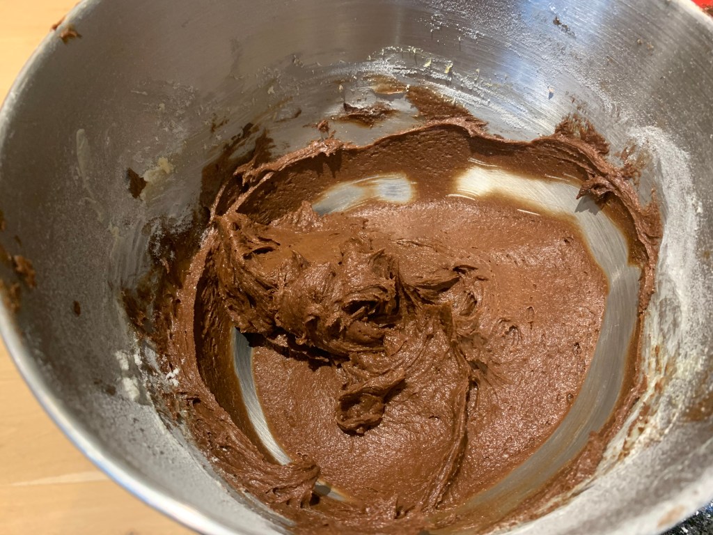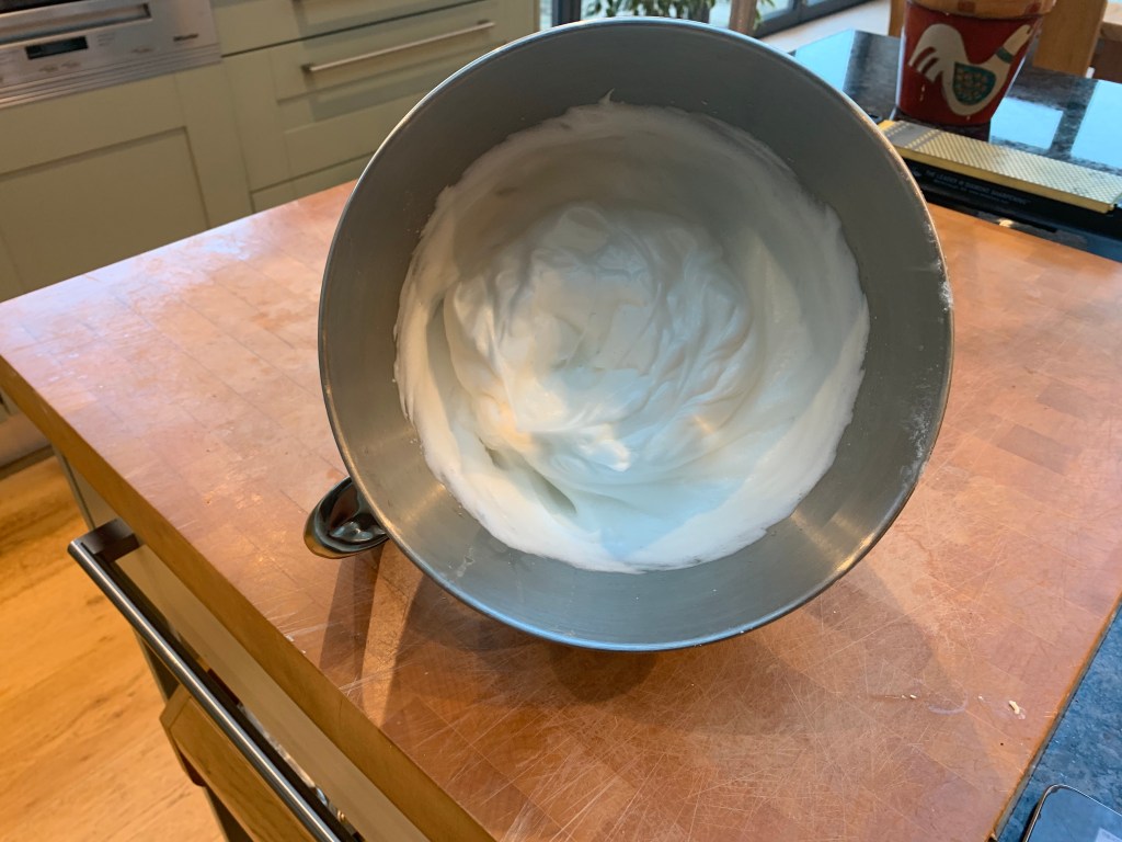 - Fold the resulting meringue mix into the cake mixture, about a quarter first, then the rest.