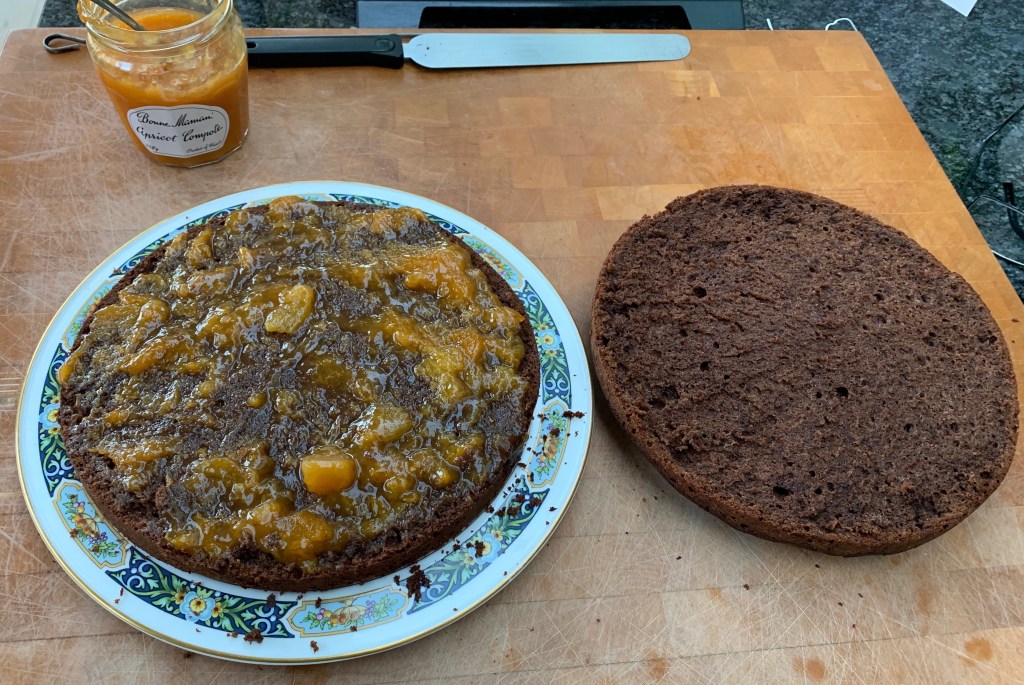 The home made jam I’ve had from an apricot-growing area in Austria has much more fruit and less sugar than apricot jam that I can buy in the UK: the nearest I’ve found here is Bonne Maman apricot compote. If you’re using standard apricot jam, you will need some lemon juice to thin it out or it won’t spread properly (some recipes suggest heating the jam).