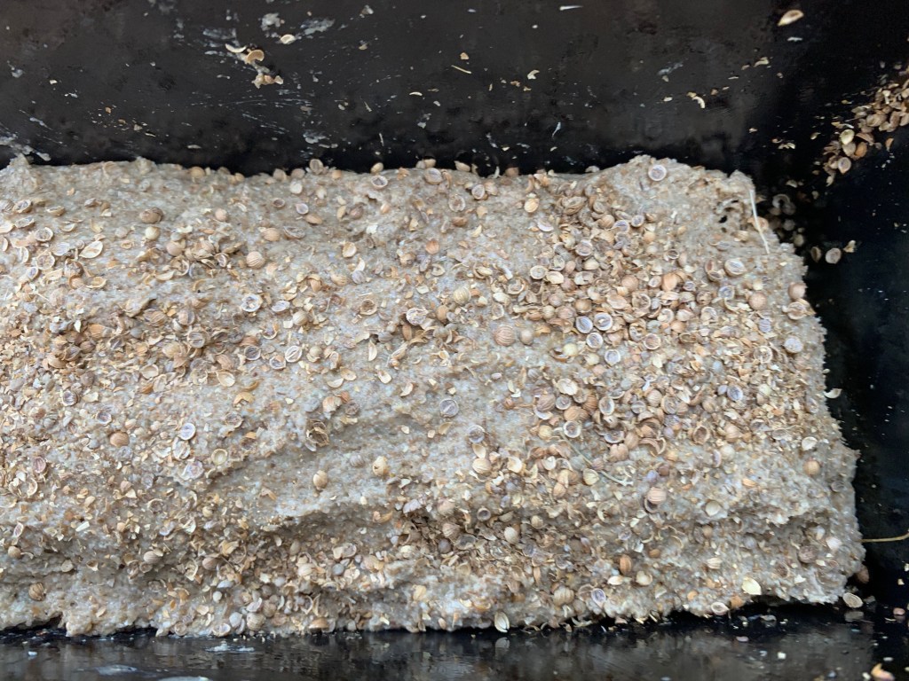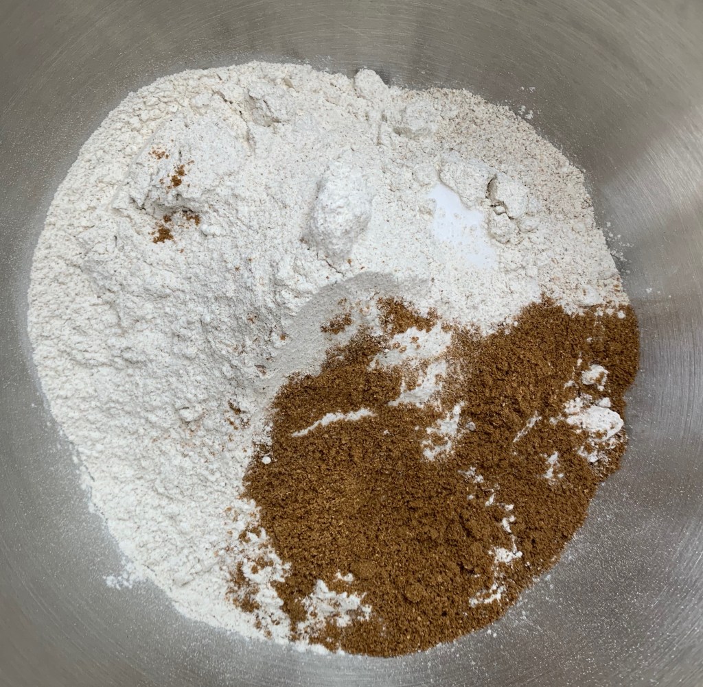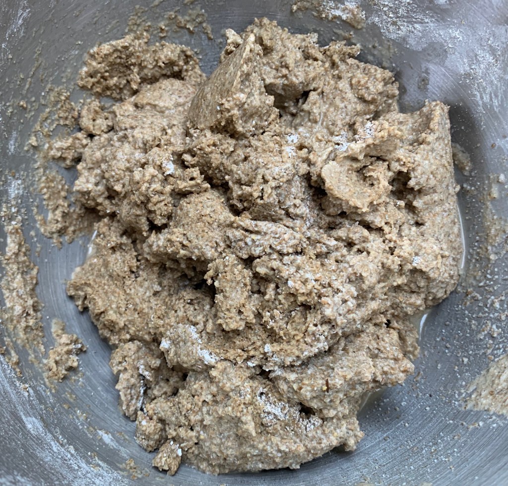 While I may get round to trying for absolute authenticity one of these days, for regular use, I’m doing a cut down version based on the one in my usual bible, Andrew Whitley’s Bread Matters. I’ve approximately doubled the quantities for my large loaf tin and done a bit of flavour adjustment for my own taste: in particular, I’ve reduced the molasses, which I do find tend to take over the flavour to the exclusion of everything else, at the expense of the result not being quite as dark.