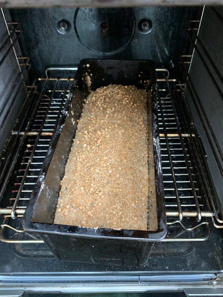 7. Preheat your oven to 250℃. Bake for 15 minutes, turn the heat down to 200℃ and bake for another 30-45 minutes. I tend to take mine out after 40 when it’s still just a fraction damp, because I don’t like risking overbaked, dried out dense rye; you may be braver.