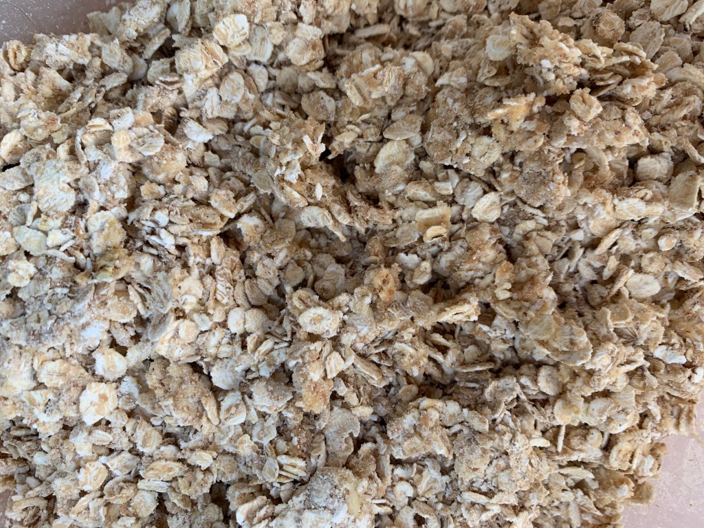 - Mix the oats, flour, baking soda or powder, salt and sugar until everything’s reasonably evenly distributed.
