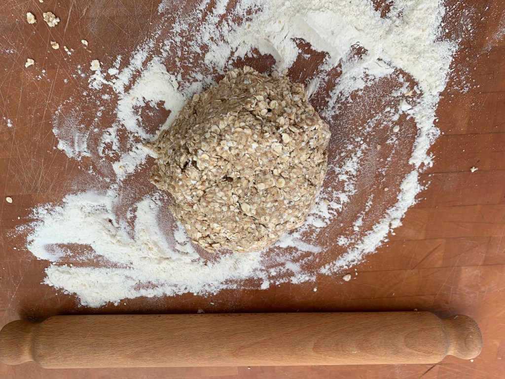 - At this stage, I normally have enough dough for two oatcakes. I divide it in half and roll them out individually