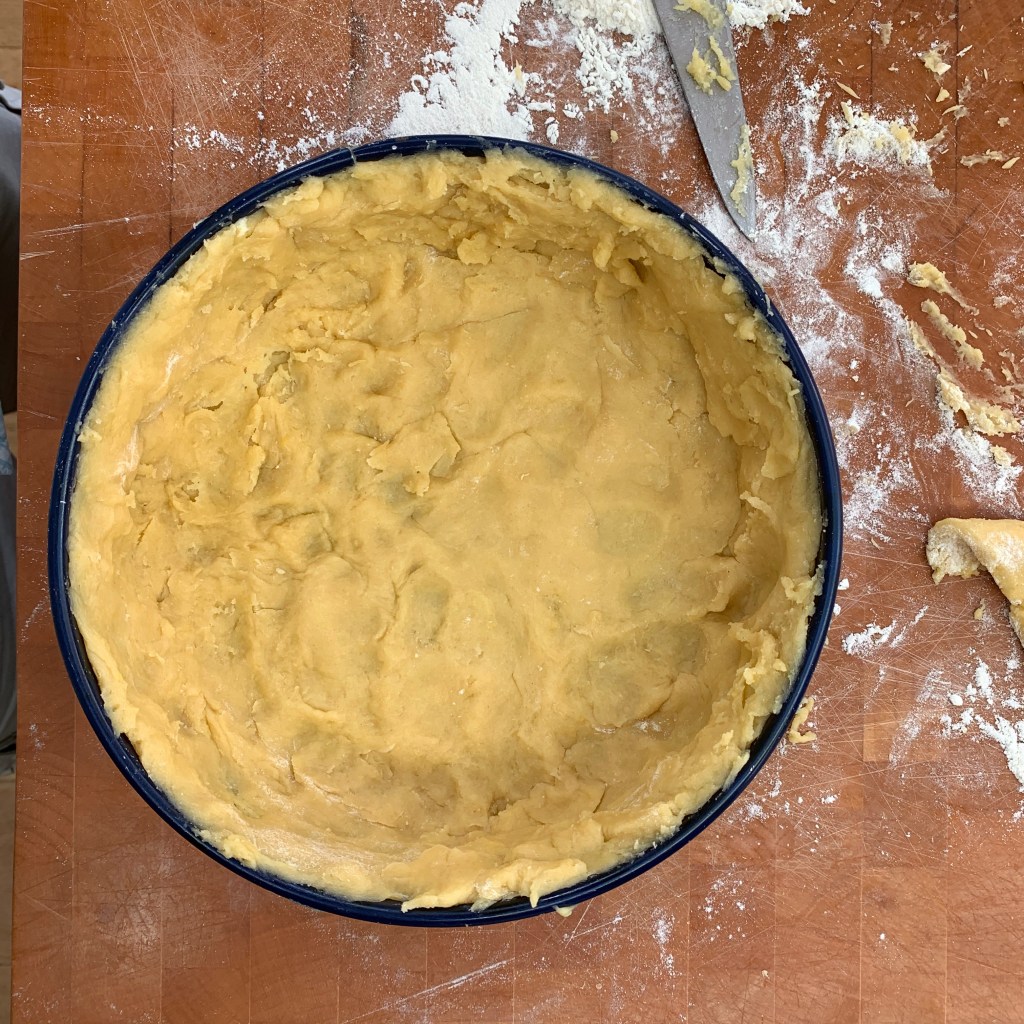 - Line your tin with the dough. If, like me, your dough always breaks at this point, don’t worry – just press it into the bottom and sides with your fingers as best you can. The recipe is very forgiving
