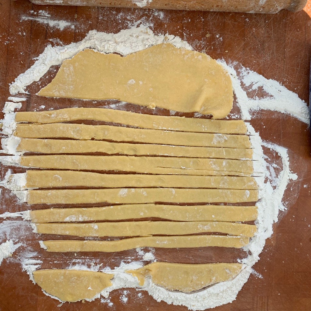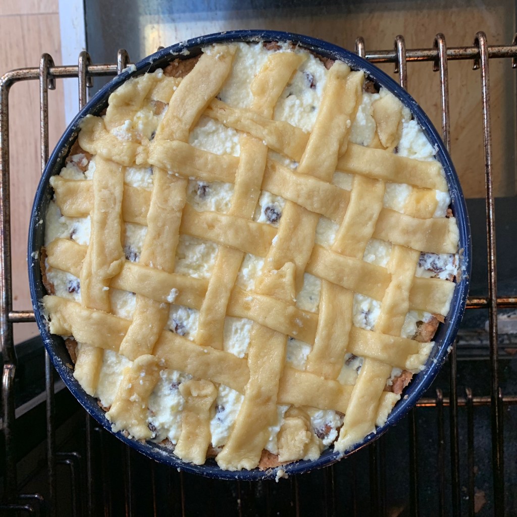 - Roll out the remaining amount of pastry and cut it into strips approximately 1cm wide. Use these to form a lattice over the tart. At this point, you might like to think about how many pieces you’re going to cut the tart into and make sure that you have a gap, not a strip of pastry, at the point at which you’re going to do this (clue: I didn’t do this and learned the hard way).