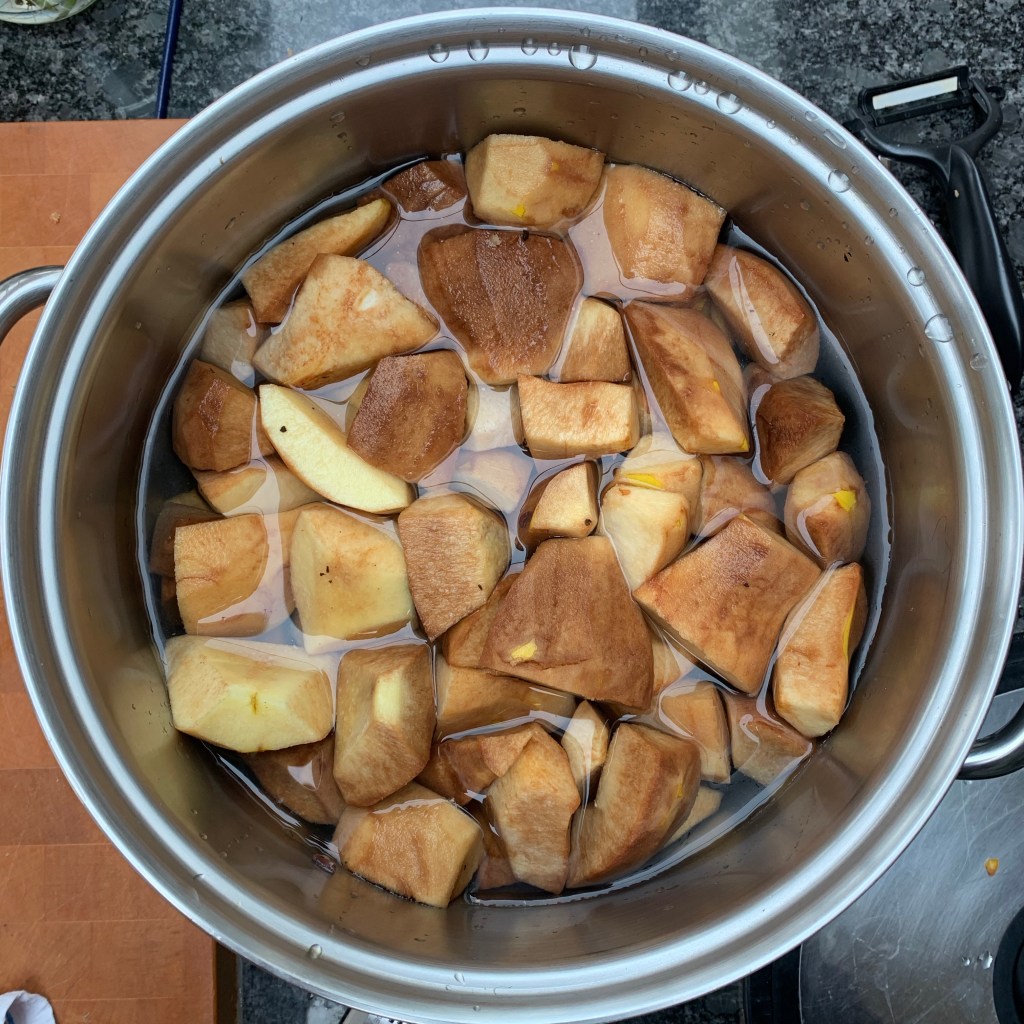 This is metricised and modified slightly from the recipe from simplyrecipes.com. I overbought quinces and made around double this recipe, which was way too much: the quantities here will make well over 1kg of paste, which is a lot more than you need for the Pasta Frola.