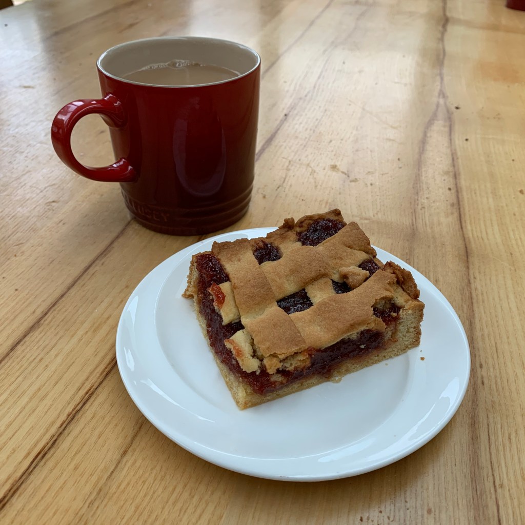 Time for a couple of short linguistic digressions. The Spanish for quince is “membrillo”, and quince paste (sometimes called “quince cheese” for reasons I can’t fathom) is “dulce de membrillo”. In Portuguese, however, a quince is a “marmelo” and the paste is called “marmelada”. The English word “marmalade” confuses both Portuguese (where orange jam is just called “doce de laranja”) and Italians, for whom the word “marmellata” means jam of any sort, and “marmellare” means “to make jam”. In Italian, “pasta frolla” simply means shortcrust pastry, and this dessert would be called a “crostata”.