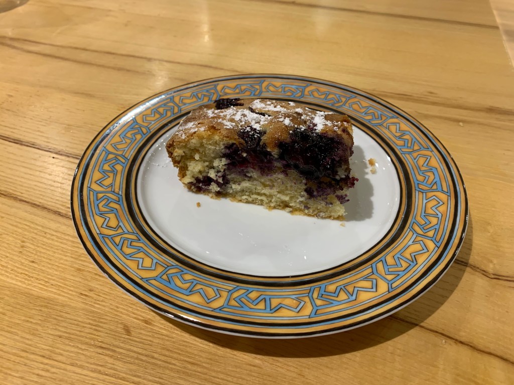 I started with a recipe from scandikitchen.co.uk and only changed a few things: I couldn’t get hold of Leksands crispbread, but I did find some dark Ryvita which I believe to be pretty similar. I used blackberry jam rather than raspberry. Vanilla essence is easier to find than vanilla sugar in these parts. I didn’t have any amaretto either, so I grated the zest of the orange that made the orange juice and added that. Personally, I think the combination of orange, cardamom and rye turned out to be an absolute winner.
