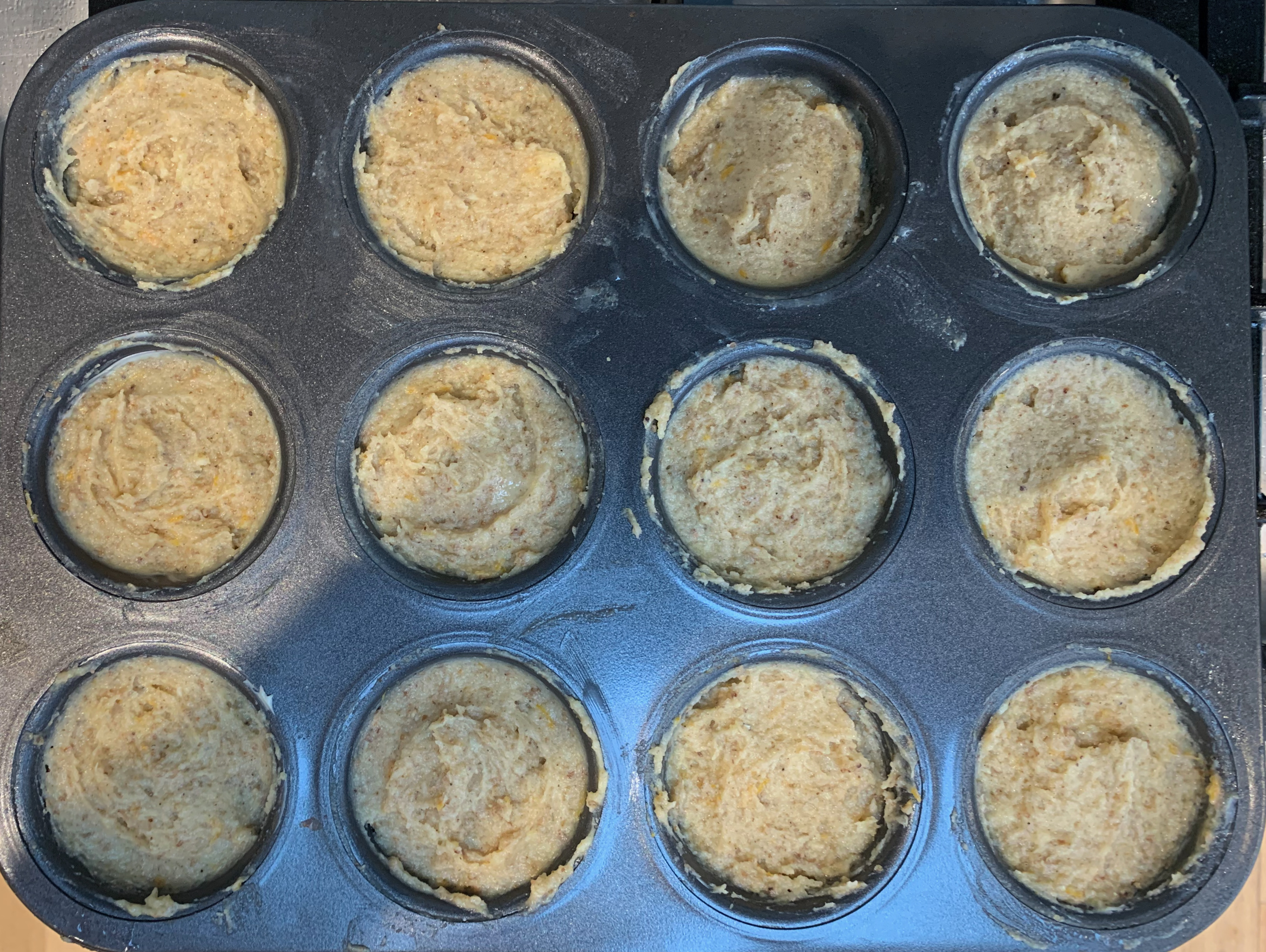 - Grease your muffin tin (or other cake mould) with some more butter.