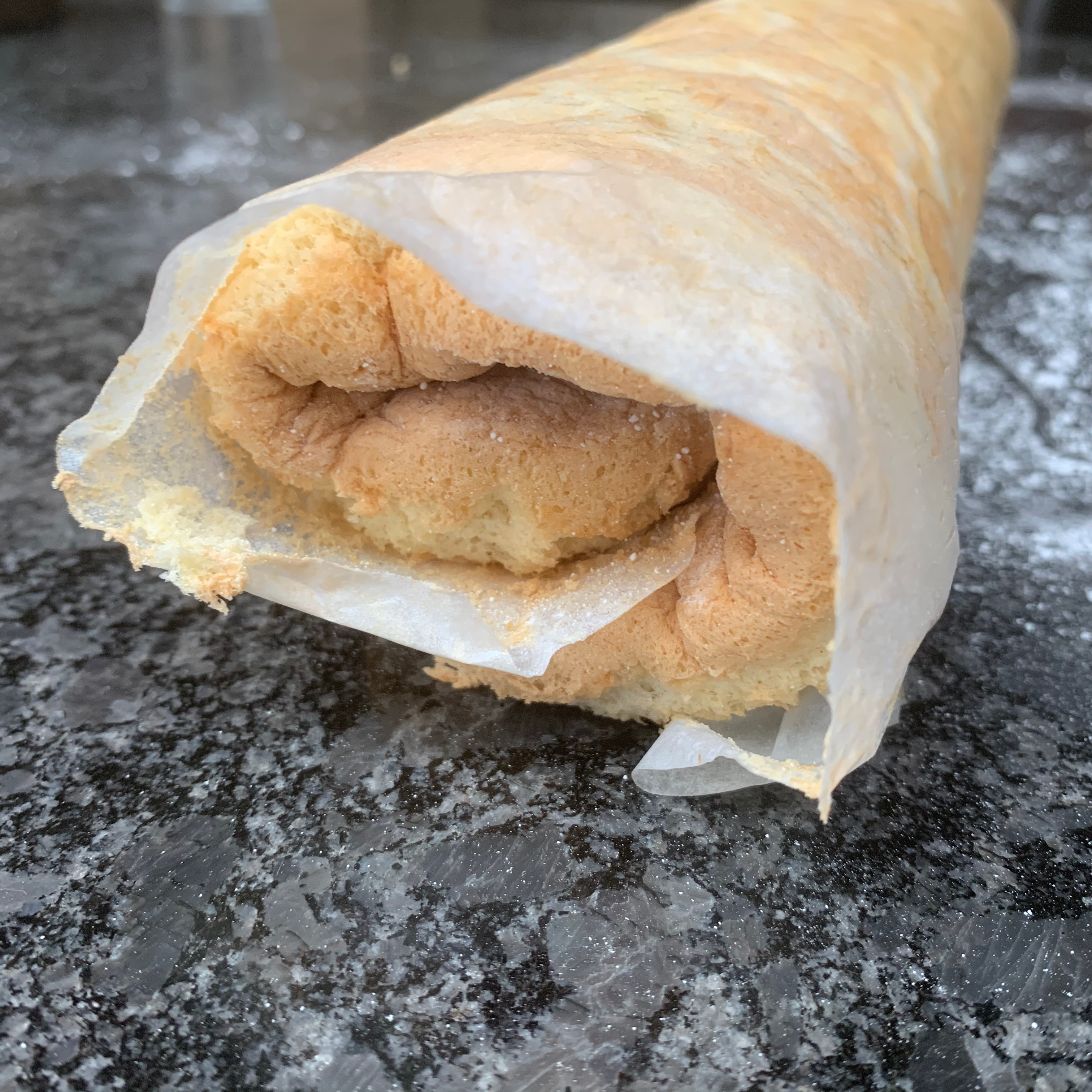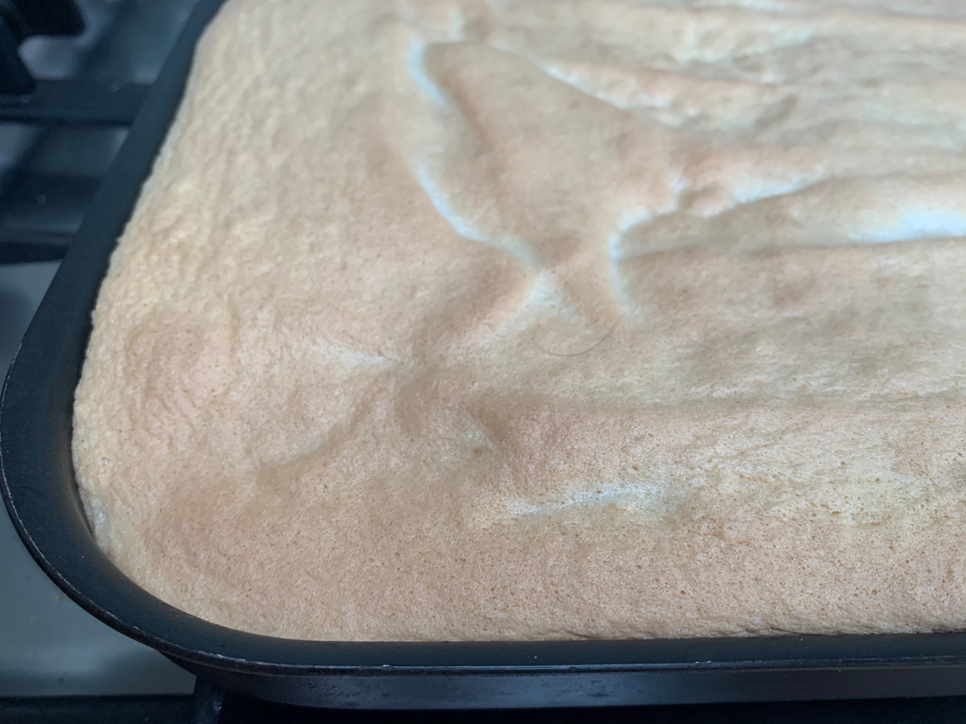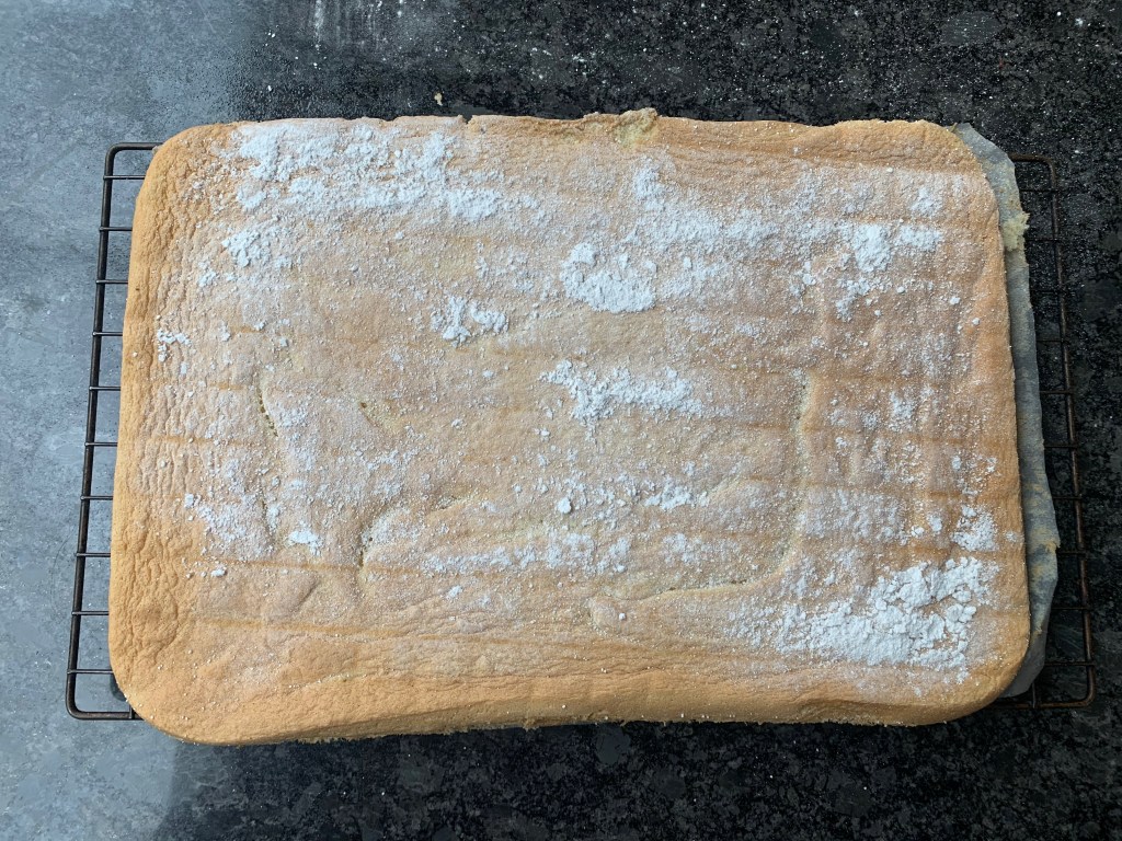 Bake for around 10 minutes. You do NOT want to overbake the sponge or you stand no chance of rolling it intact.