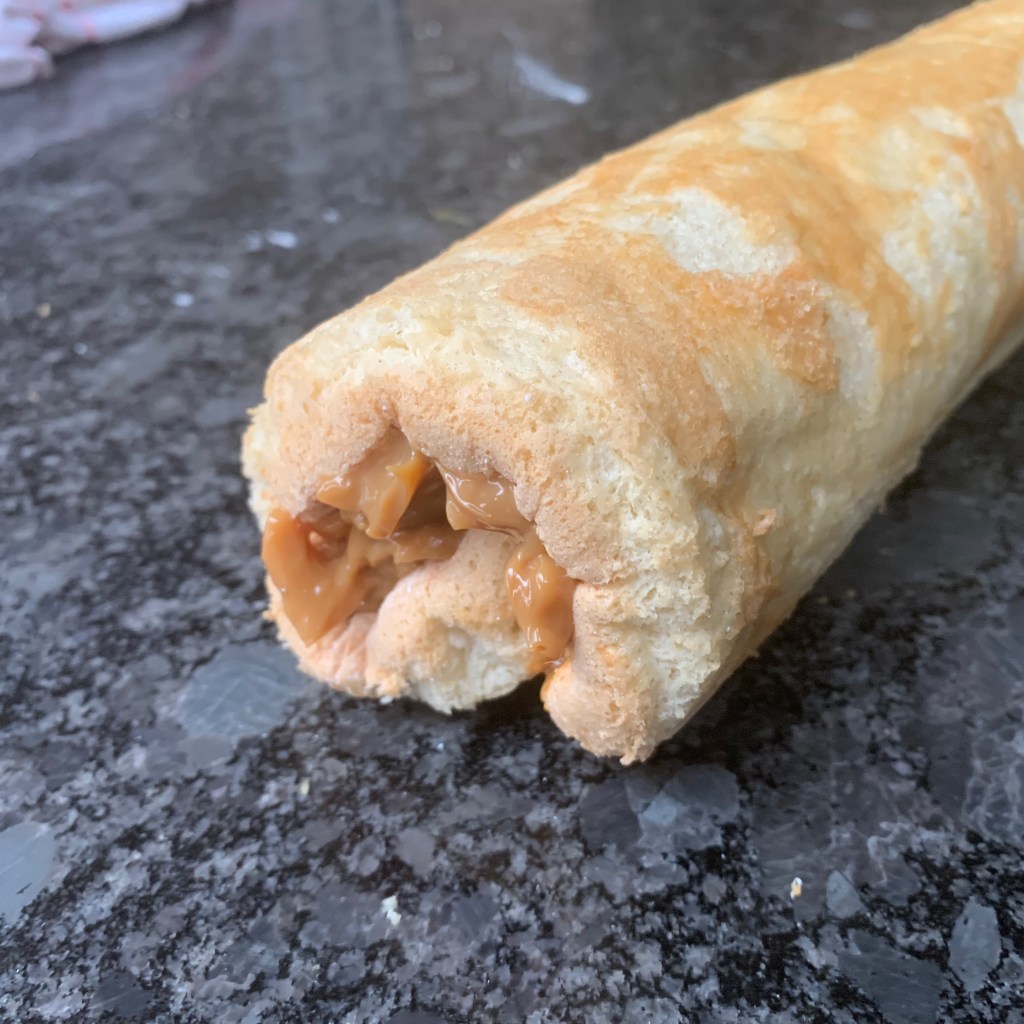 Spread your rectangle of dough with the filling. Don’t go too close to the edges – you won’t want filling leaking out.