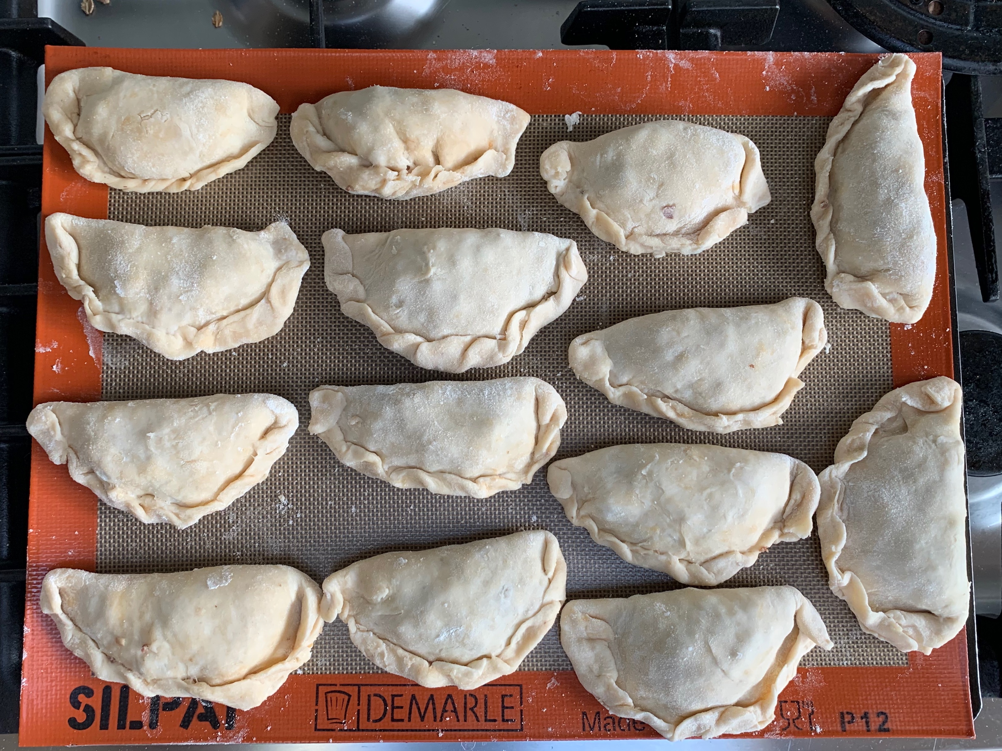 Put the empanada on your baking sheet, and repeat for the next fifteen.