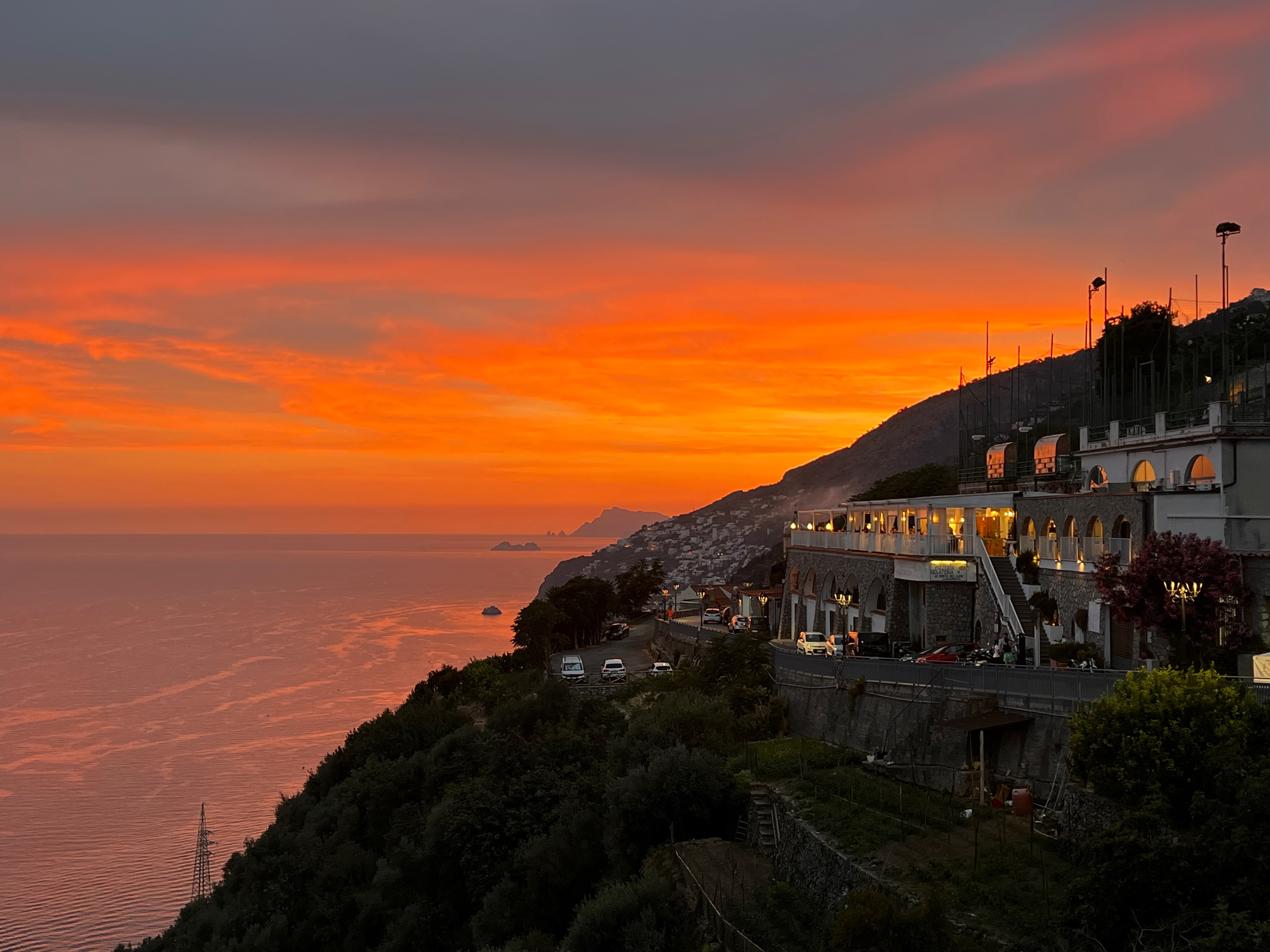The Amalfi Coast (or “Costiera Amalfitana”) fully deserves its reputation as one of the most beautiful stretches of coastline on the planet. Picture-perfect towns and villages perch uncertainly on the small flat spaces between cliffs that fall into the sea, or are hollowed into them. Vertiginous stairways take you from the coast road, high above the ocean, down to grey sand beaches. The scenery is studded with the luminous green of lemon trees: lemons from Amalfi and Sorrento are the most famous in Italy. Along the way, a never-ending series of places to vist, stay and/or eat with dazzling views: the picture here is taken from the Monastero Santa Rosa, a 17th century Dominican convent now turned into a high end hotel and restaurant.
