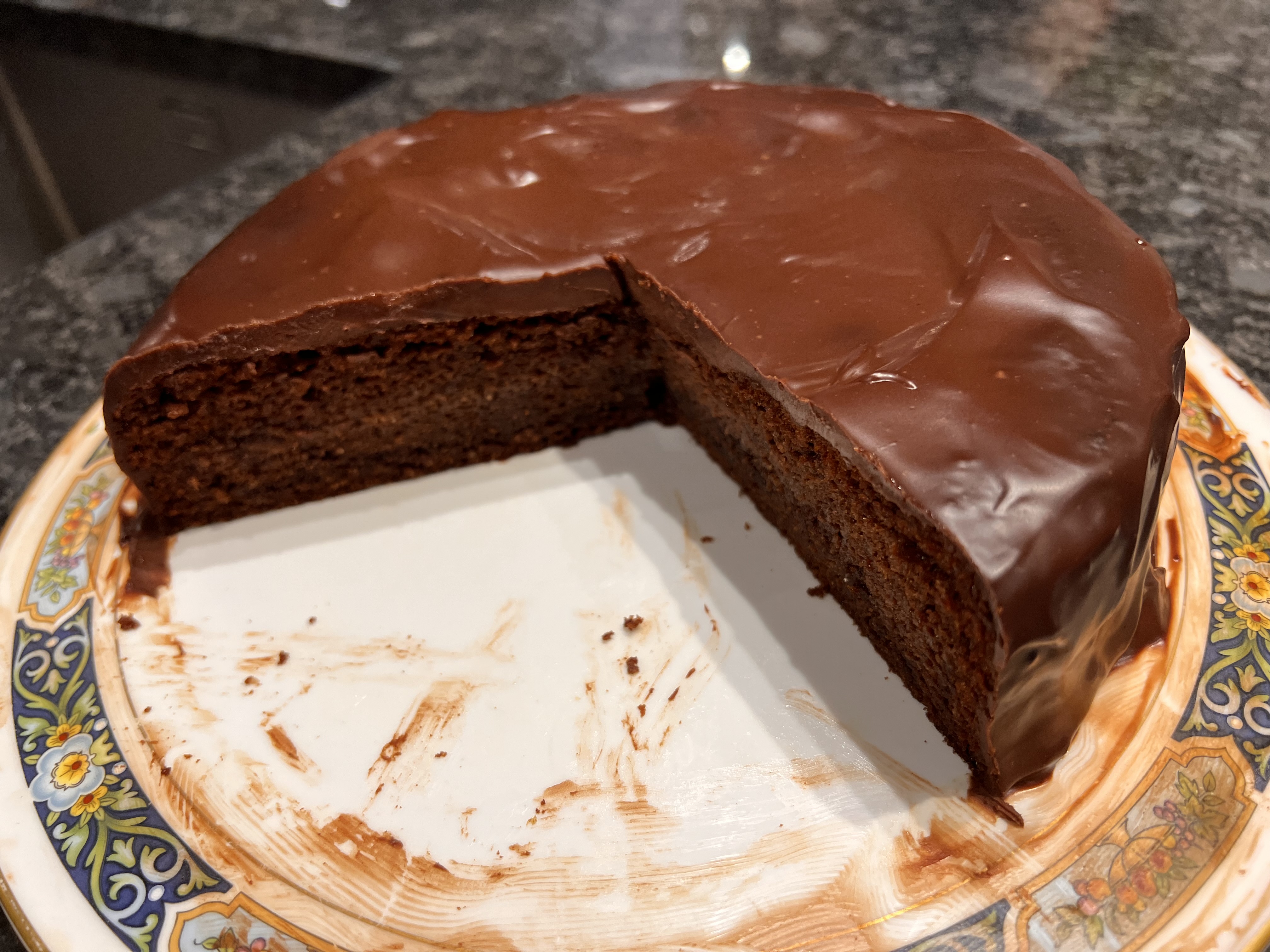 I can’t fault the results. My family proclaimed this to be better than the original, which we attribute to liking the extra flavour of the almonds and preferring the creaminess of the ganache to the extra sweetness of the chocolate icing. It’s a winner.