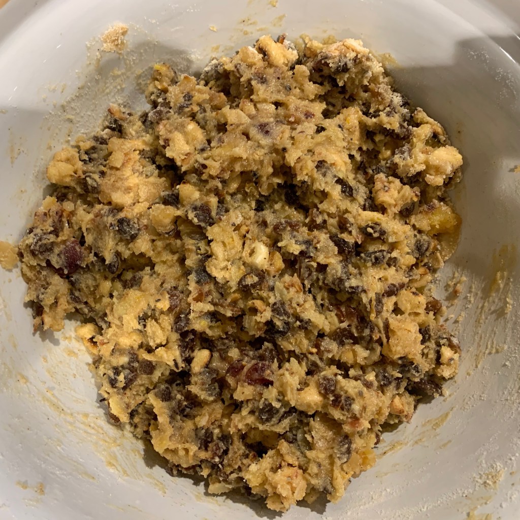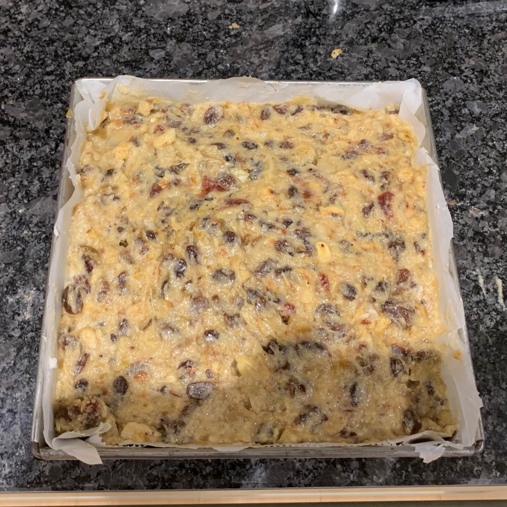 - Add the orange juice, zest and vanilla essence and mix thoroughly. You should now have a fairly thick, sticky batter.